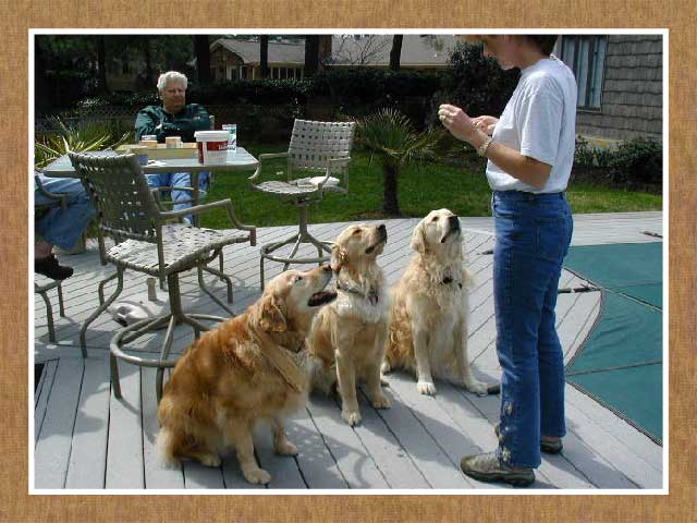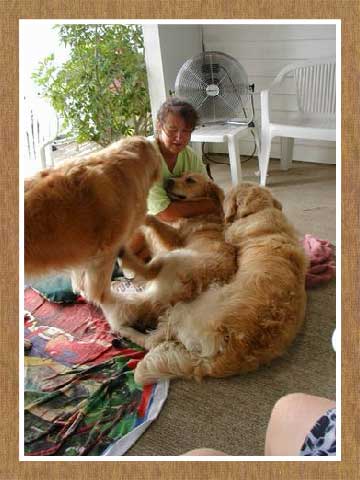 We'd like to thank our friends Marti and Joe for sharing their Goldens and also Carly's friends Laser, Gabby and Allie, and also for Jim as the Captain.